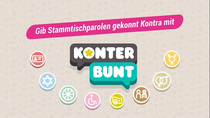 Mit der kostenlosen App „KonterBUNT“ der Landeszentrale für politische Bildung kann man hilfreiche Strategien aus Argumentationstrainings gegen Stammtischparolen kennenlernen. Die App wurde von Expertinnen und Experten entwickelt. Sie enthält Vorschläge für gute Argumente gegen Parolen sowie einen Strategieguide. In einem Mini-Game lassen sich verschiedene Reaktionen auf Parolen direkt in der App ausprobieren. Weitere Information finden Sie auf der Website der Niedersächsischen Landeszentrale für politische Bildung.