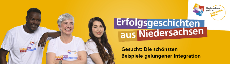 Wir laden alle Engagierten ein, ihre Geschichten zur gelungenen Integration selbst zu erzählen. Wir sammeln die persönlichen Beiträge der Menschen vor Ort - in Form von Videos zum Teilen und Nachmachen. Alle Einsendungen präsentieren wir im Netz auf unserem Youtube-Kanal „Erfolgsgeschichten aus Niedersachsen“.