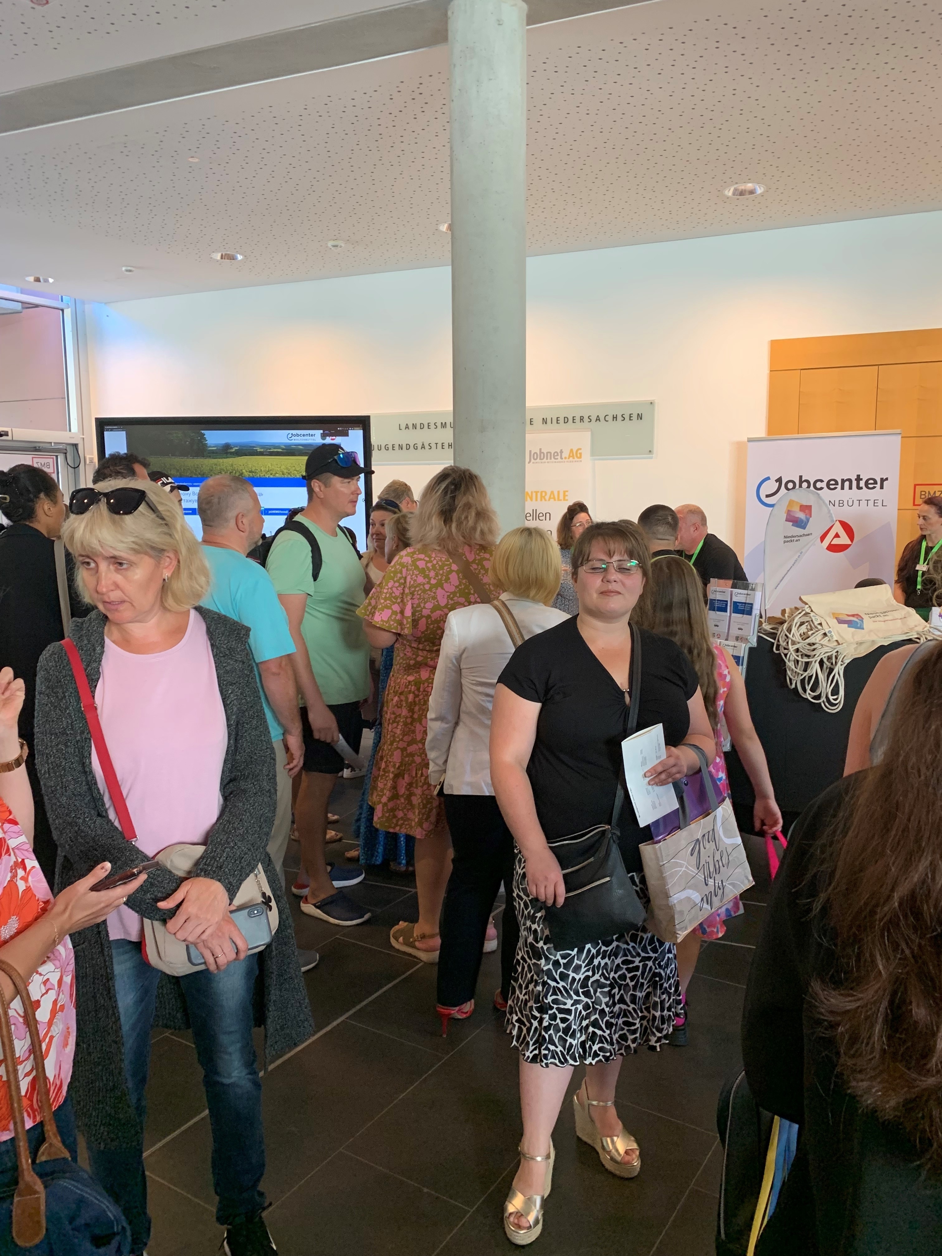 Ob Fahrerinnen und Fahrer, Mechanikerinnen und Mechaniker, Kaufleute, Pflege- oder Reinigungskräfte, der Bedarf an Fachkräften in der Region ist groß. 26 Unternehmen aus der Region nutzten heute die Chance, sich geflüchteten Menschen vorzustellen, um für sich zu werben. Nahezu 1000 geflüchtete Menschen waren der gemeinsamen Einladung des Jobcenters Landkreis Lüneburg, des Bündnisses NIEDERSACHSEN PACKT AN, des Amtes für regionale Landesentwicklung Lüneburg und der Agentur für Arbeit Lüneburg – Uelzen gefolgt und besuchten die regionale Jobmesse in den Räumen des Jobcenters in Volgershall.