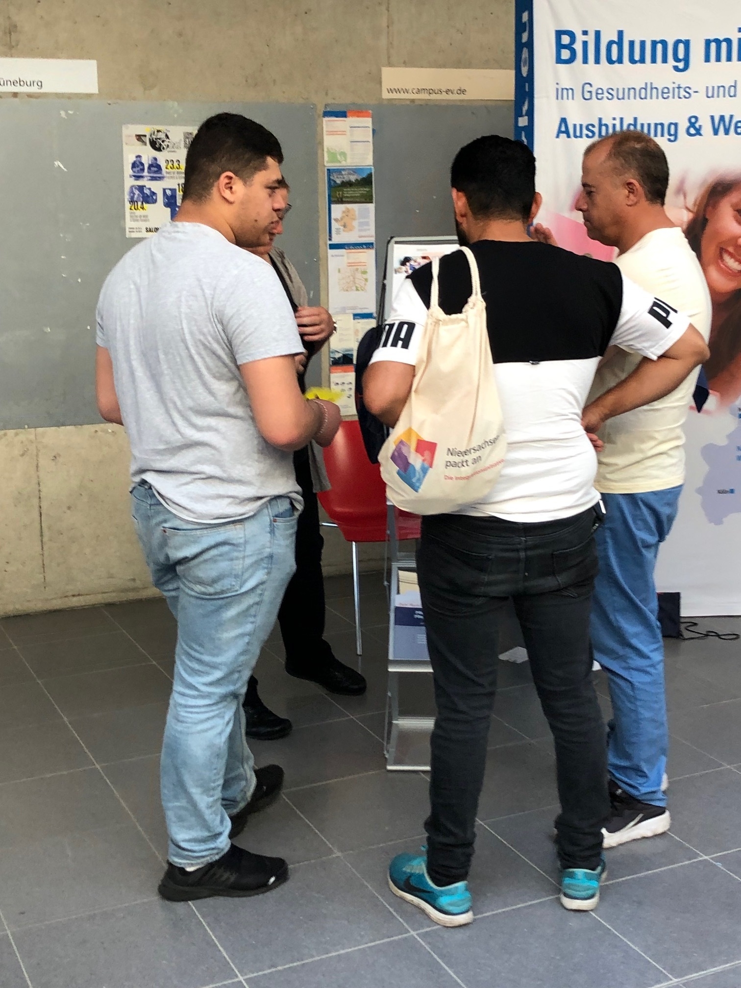 Bei einem Rundgang auf der Messe kamen Rehr, Beckmann und Rodewald mit den Arbeitgebern und den Besuchern ins Gespräch. Im Austausch erfuhren sie auch von den persönlichen Herausforderungen bei der Integration von Geflüchteten.