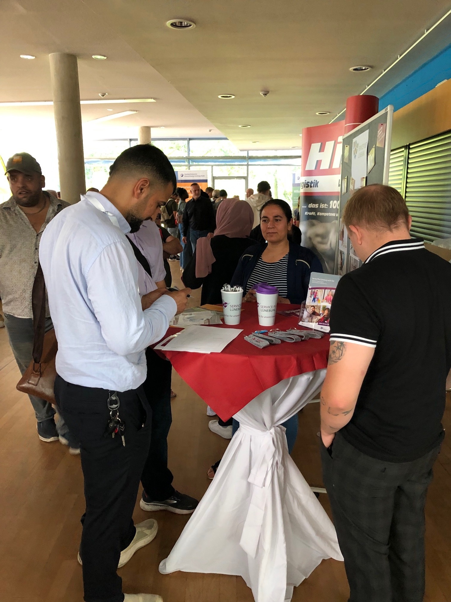 Das Jobcenter Landkreis Harburg, das Bündnis „Niedersachsen packt an“, das Amt für regionale Landesentwicklung Lüneburg und die Agentur für Arbeit Lüneburg-Uelzen richteten erstmals gemeinsam eine Jobmesse für Geflüchtete aus.