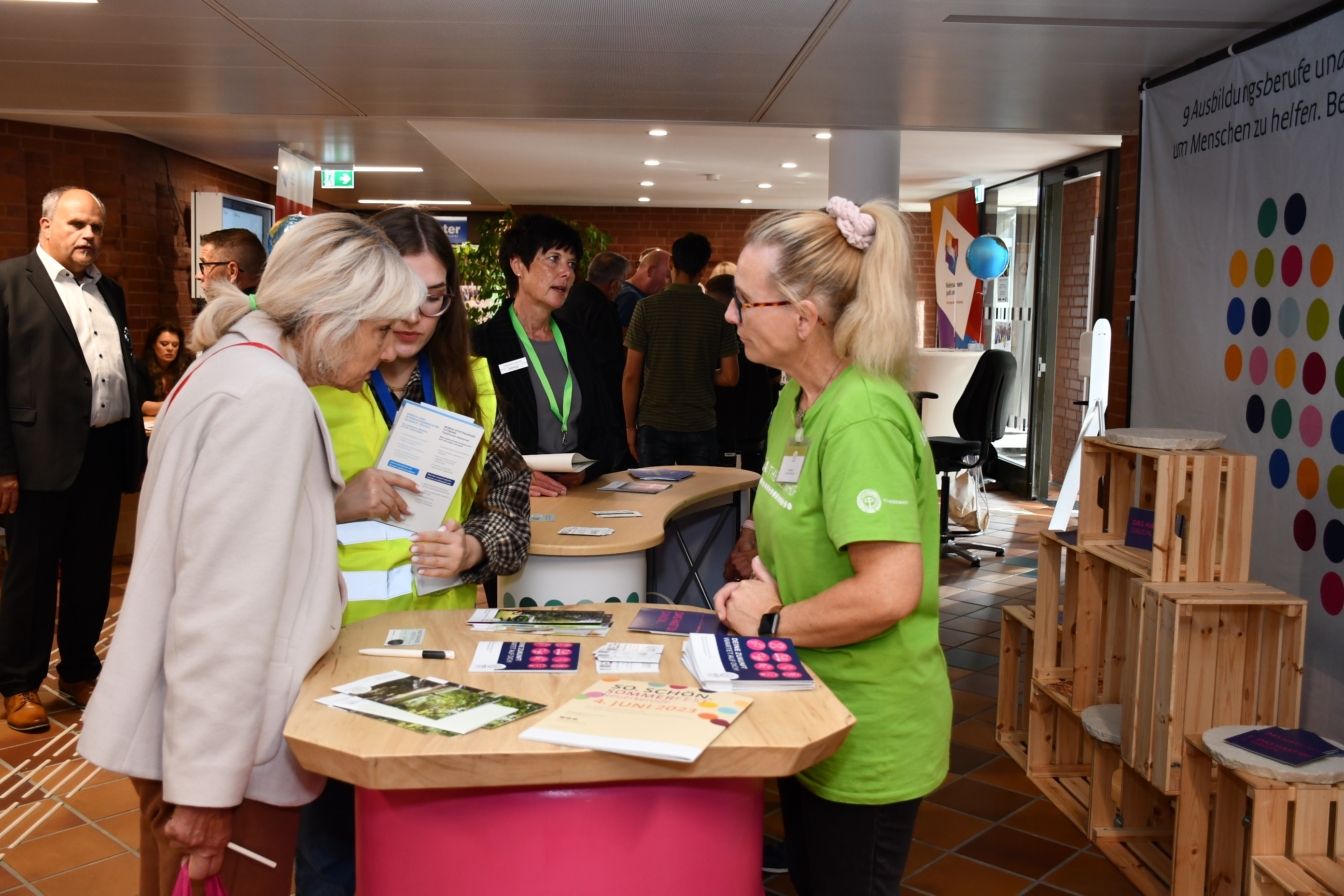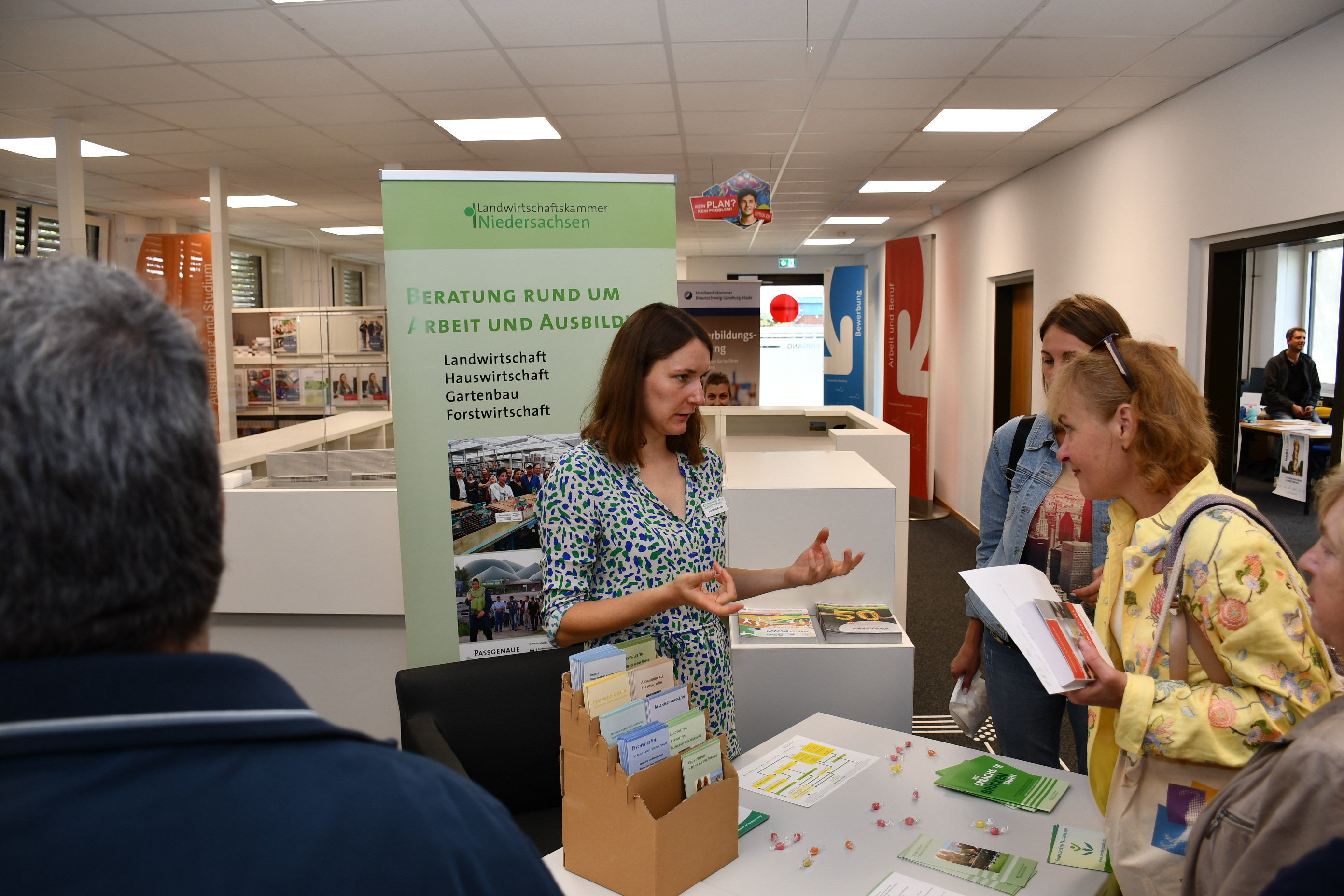 Nach sechs niedersächsischen Messen dieser Art im ersten Halbjahr 2023 bilden die Veranstaltungen in Wolfenbüttel und Lüneburg den Auftakt für das zweite Halbjahr. In Wolfenbüttel präsentierten sich regionale Unternehmen aus verschiedenen Branchen wie Gastronomie, Pflege, Handwerk, Produktion und Dienstleistung. Begleitet durch Dolmetscherinnen und Dolmetscher informierten sich die Besucherinnen und Besucher zu Jobs und Einstellungsvoraussetzungen.