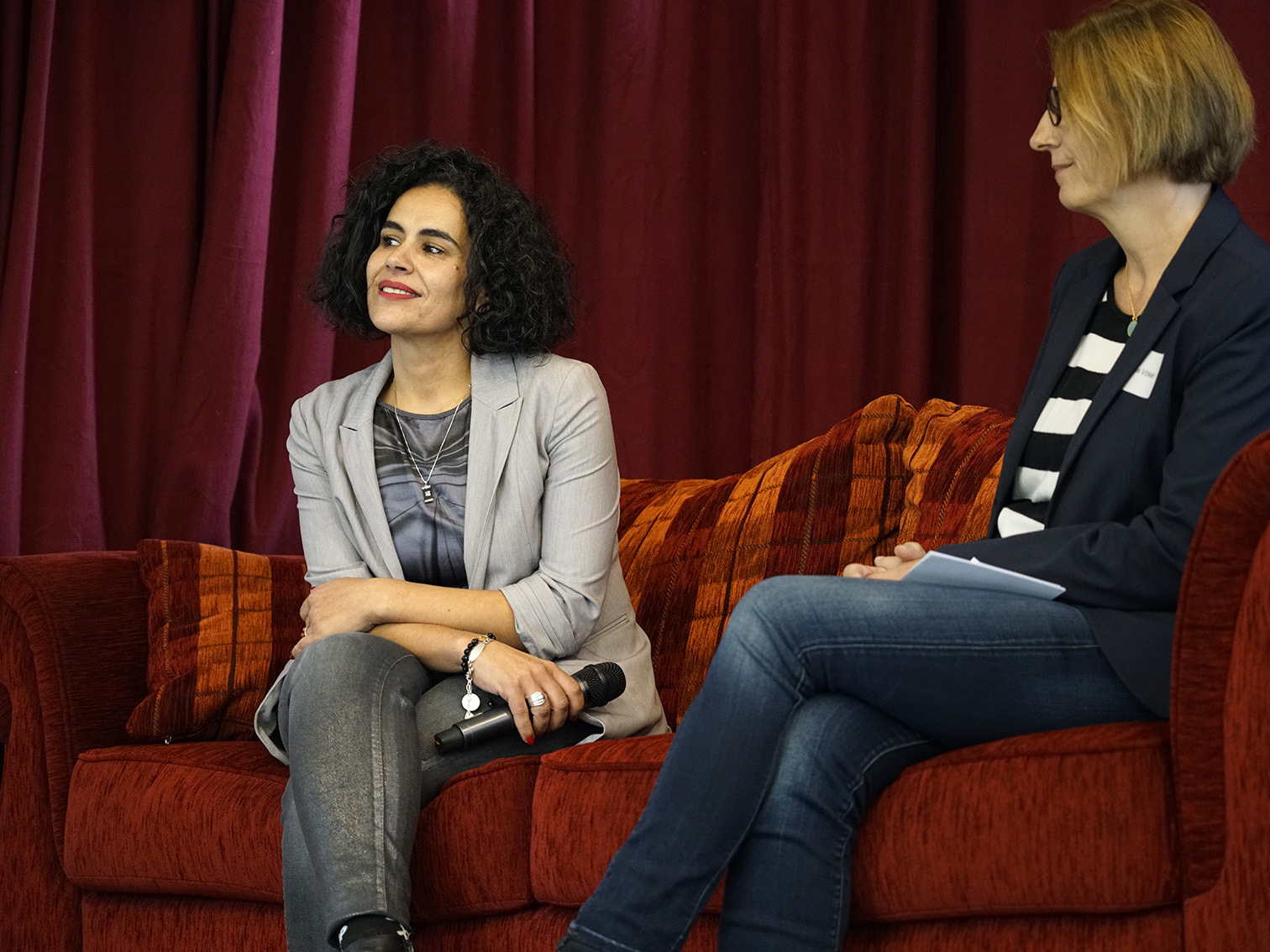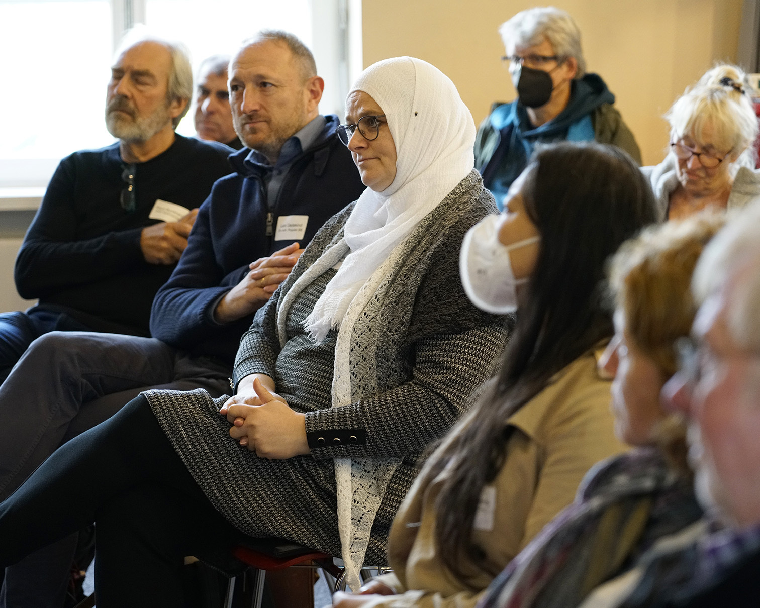 In Vorträgen wurden die Anwesenden zunächst in das Thema Flucht und Migration im Zusammenhang mit Medien eingeführt. Hiam Stülten präsentierte eindrucksvoll, wie die eigene Fluchterfahrung zu einem Filmprojekt geführt hat. Anschließend beschrieb die Journalisten Eva Völker, wie sie ihren Podcast Grünkohl mit Pita erstellt. In dieser Podcastserie stellt sie Menschen mit Migrationserfahrung vor und spricht mit ihnen über ihre Lebensgeschichte.