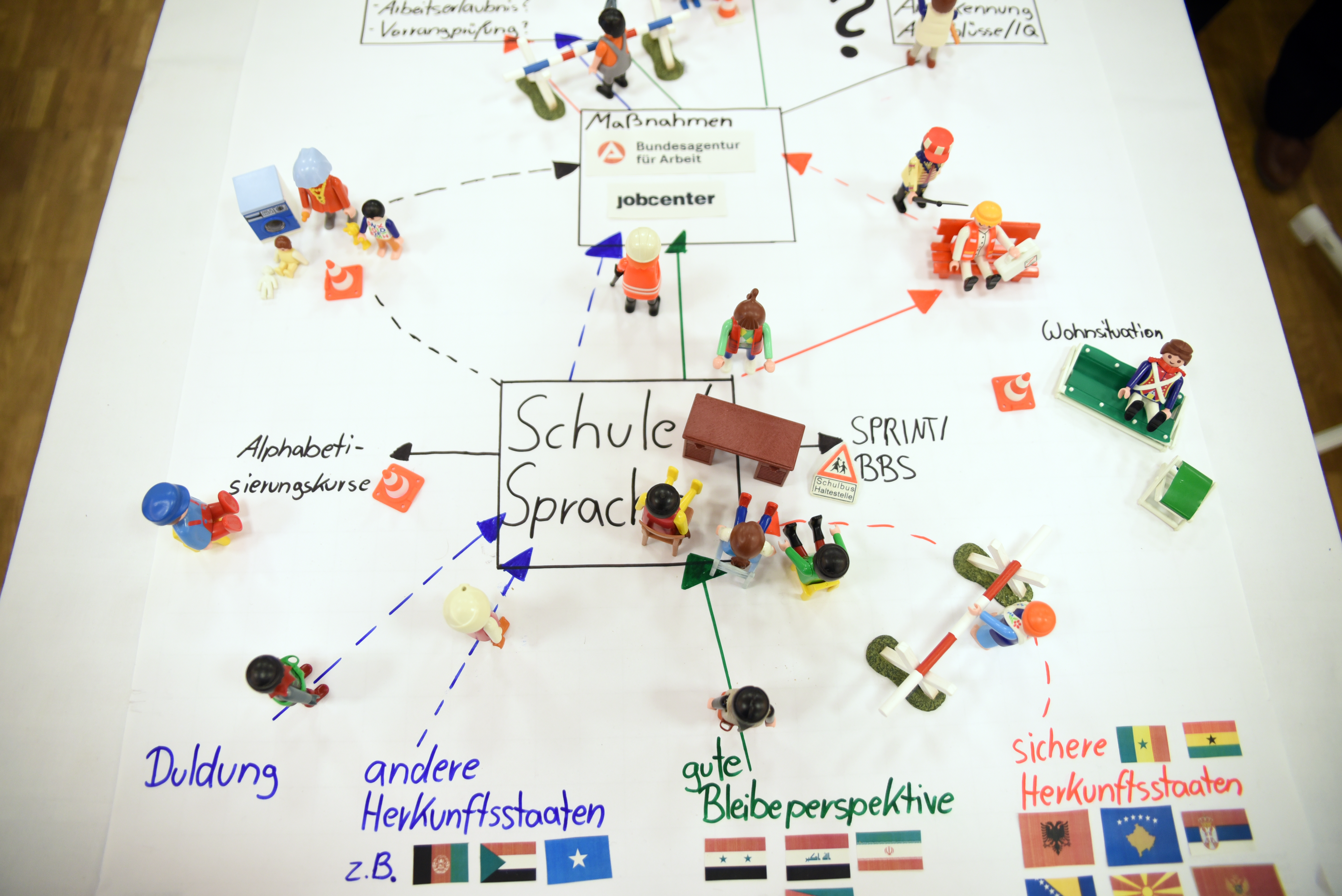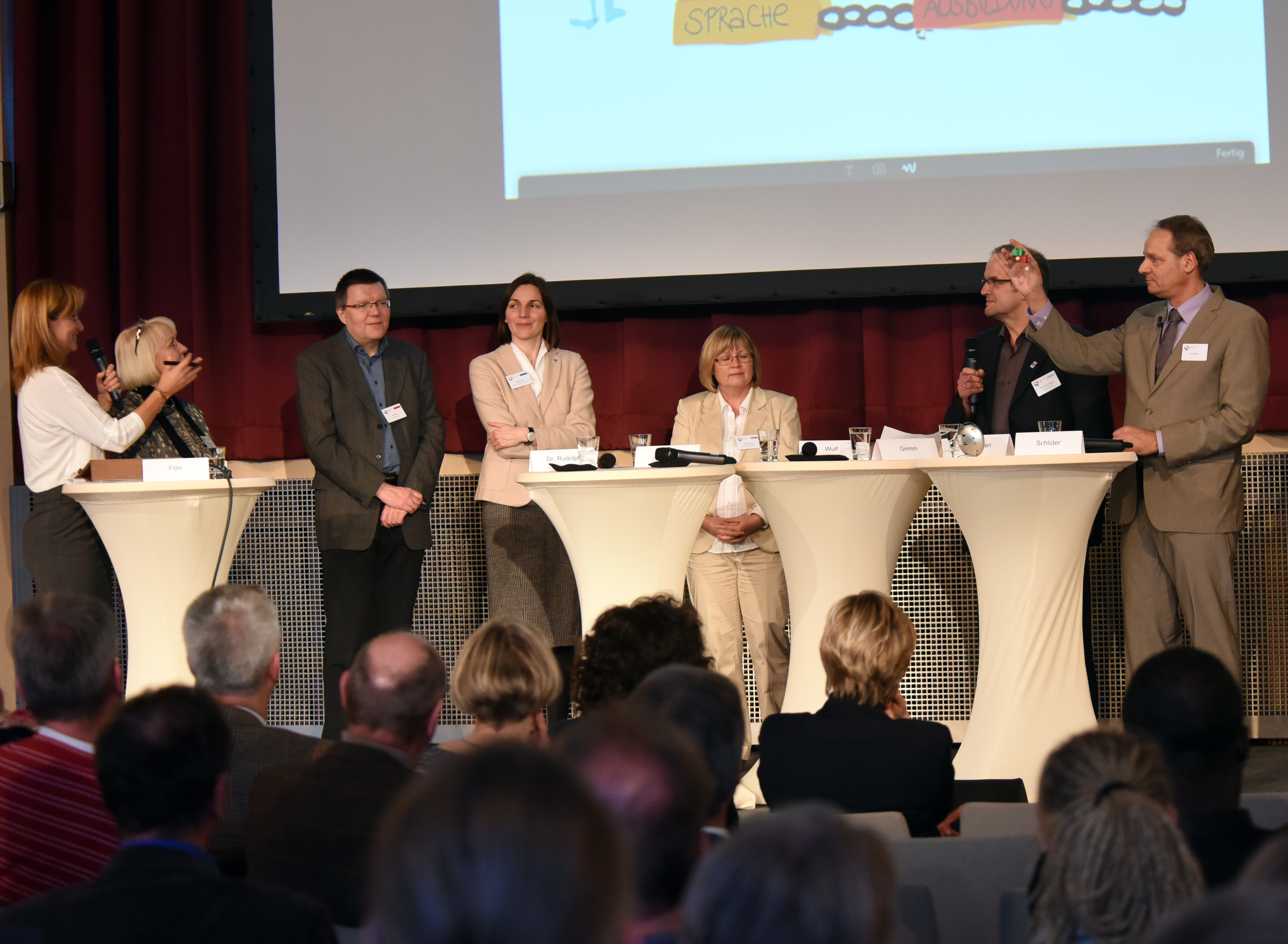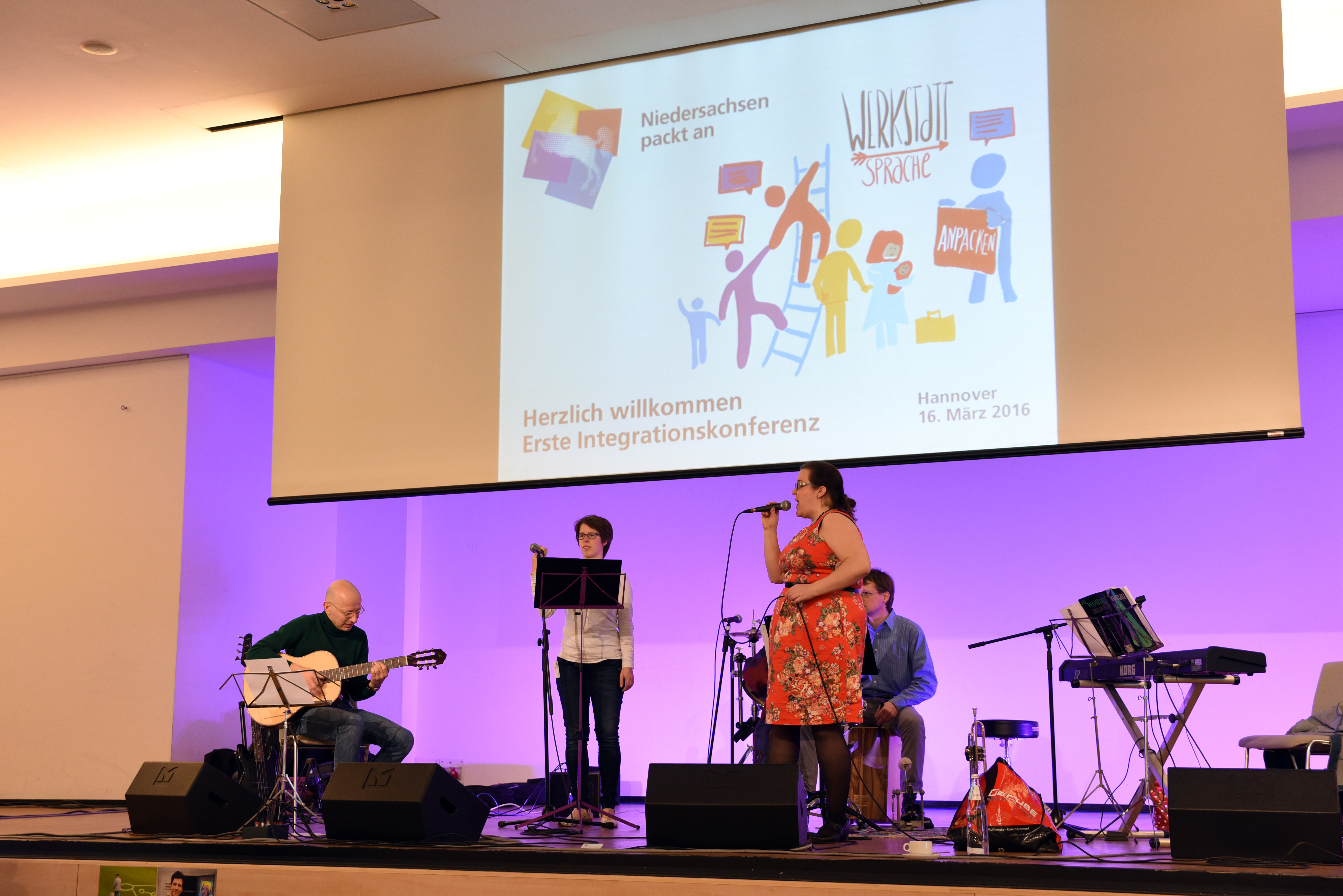 Die erste Integrationskonferenz im Rahmen des Bündnisses am 16. März 2016 fand daher zum Thema „Werkstatt Sprache“ statt. Ziel der Veranstaltung war es, die vielen bereits vorhandenen Sprachlernmöglichkeiten aufeinander abzustimmen, die Akteurinnen und Akteure miteinander ins Gespräch zu bringen, regional vorhandene gute Beispiele herauszufinden, Hemmnisse und Hürden bei der Umsetzung zu identifizieren und Vorschläge zu entwickeln, wie Spracherwerb für geflüchtete Menschen einfacher und wirksamer gemacht werden kann. Zu dem Erfolg der Veranstaltung haben alle Bündnispartnerinnen und -partner, Unterstützerinnen und Unterstützer sowie die mehr als 500 Tagungsteilnehmenden beigetragen. Die landesweite Integrationskonferenz „Werkstatt Sprache“ fand ihre Fortsetzung in vier regionalenIntegrationskonferenzen der Ämter für regionale Landesentwicklung.