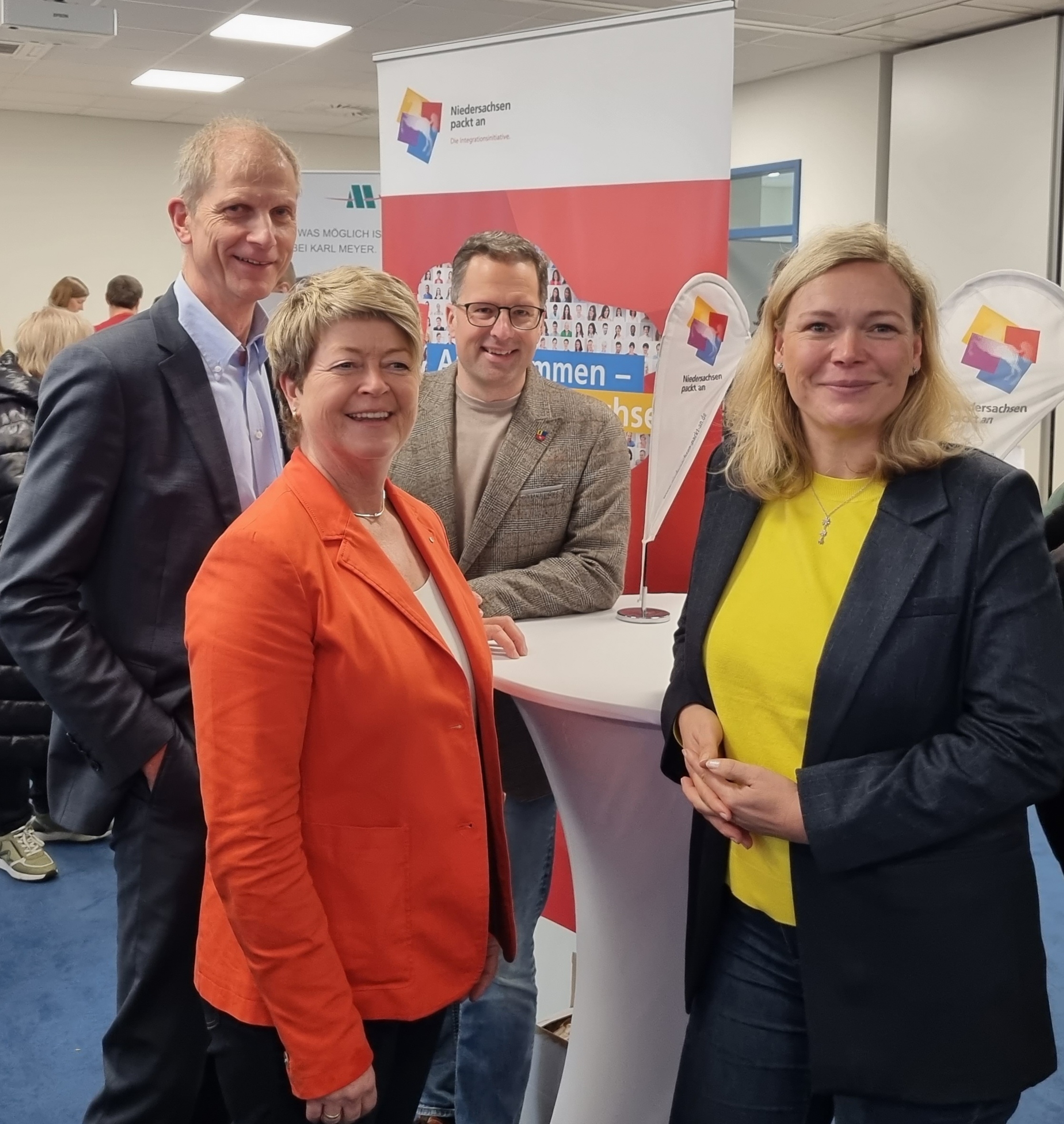 (v.l.n.r.): Harald Ottmar, stellvertretender Leiter des Amtes für regionale Landesentwicklung Lüneburg, Dagmar Froelich, Vorsitzende der Geschäftsführung der Agentur für Arbeit Stade, Kai Seefried, Landrat des Landkreises Stade, Dr. Anja Wode, Geschäftsführerin des Jobcenters im Landkreis Stade