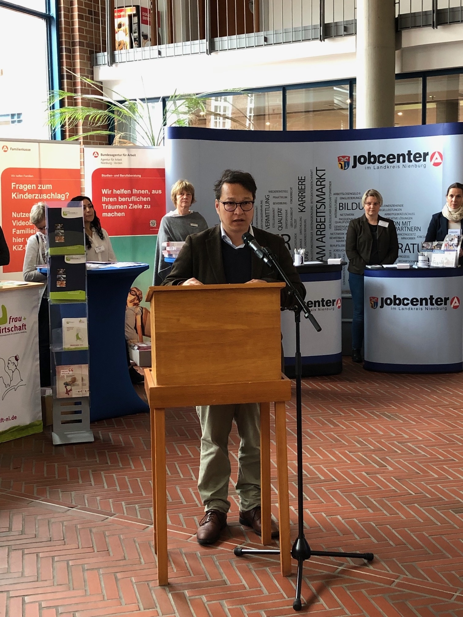 Unter dem Motto: „Menschen in Ausbildung und Arbeit bringen“ fand am Donnerstag, den 11.05.2023 die Jobmesse Nienburg im Rathaus der Stadt Nienburg statt. Das lokale Jobcenter hatte gemeinsam mit der Arbeitsagentur, dem Landkreis, der Wirtschaftsförderung und der Stadt als Gastgeberin zur Neuauflage der Messe geladen. Einer der Schwerpunkte war die Integration Geflüchteter, insbesondere von Menschen aus der Ukraine. In diesem Jahr finden in allen Regionen Niedersachsens Jobmessen mit diesem Schwerpunkt statt. Begleitet werden diese von dem Bündnis „Niedersachsen packt an“ und den Ämtern für regionale Landesentwicklung.