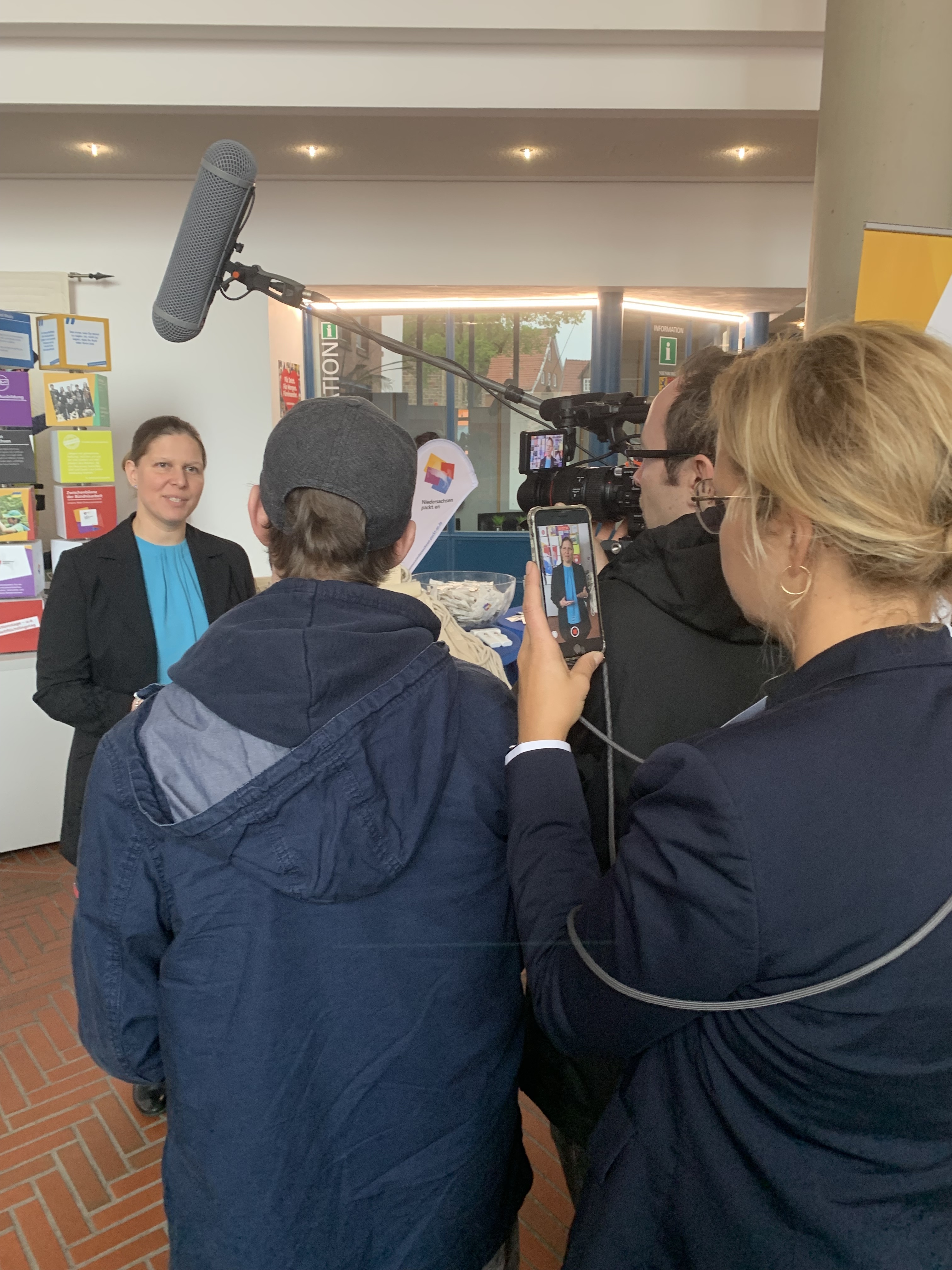 Niedersachsens Ministerin für Bundes- und Europaangelegenheiten und Regionale Entwicklung, Wiebke Osigus, machte sich ebenfalls ein Bild von den Angeboten der Messe. „Das Engagement der beteiligten Institutionen und Unternehmen ist beeindruckend. Die Idee, Einblicke in Berufe mit Hilfe einer VR-Brille zu geben, ist zum Beispiel nicht nur ausgesprochen spannend, sondern auch richtig clever – mögliche Sprachbarrieren im Kontakt mit Geflüchteten stehen der Information so nicht mehr im Weg“, lobte Osigus. „Regionale Jobmessen haben den entscheidenden Vorteil, dass sie passgenau die Bedarfe auf beiden Seiten kennen und entsprechende Lösungen bieten. Ich danke allen an der Organisation beteiligten Stellen und freue mich, dass sich unser Amt für regionale Landesentwicklung Leine-Weser bei den Jobmessen für Integration und Teilhabe so stark macht,“ so Osigus weiter.