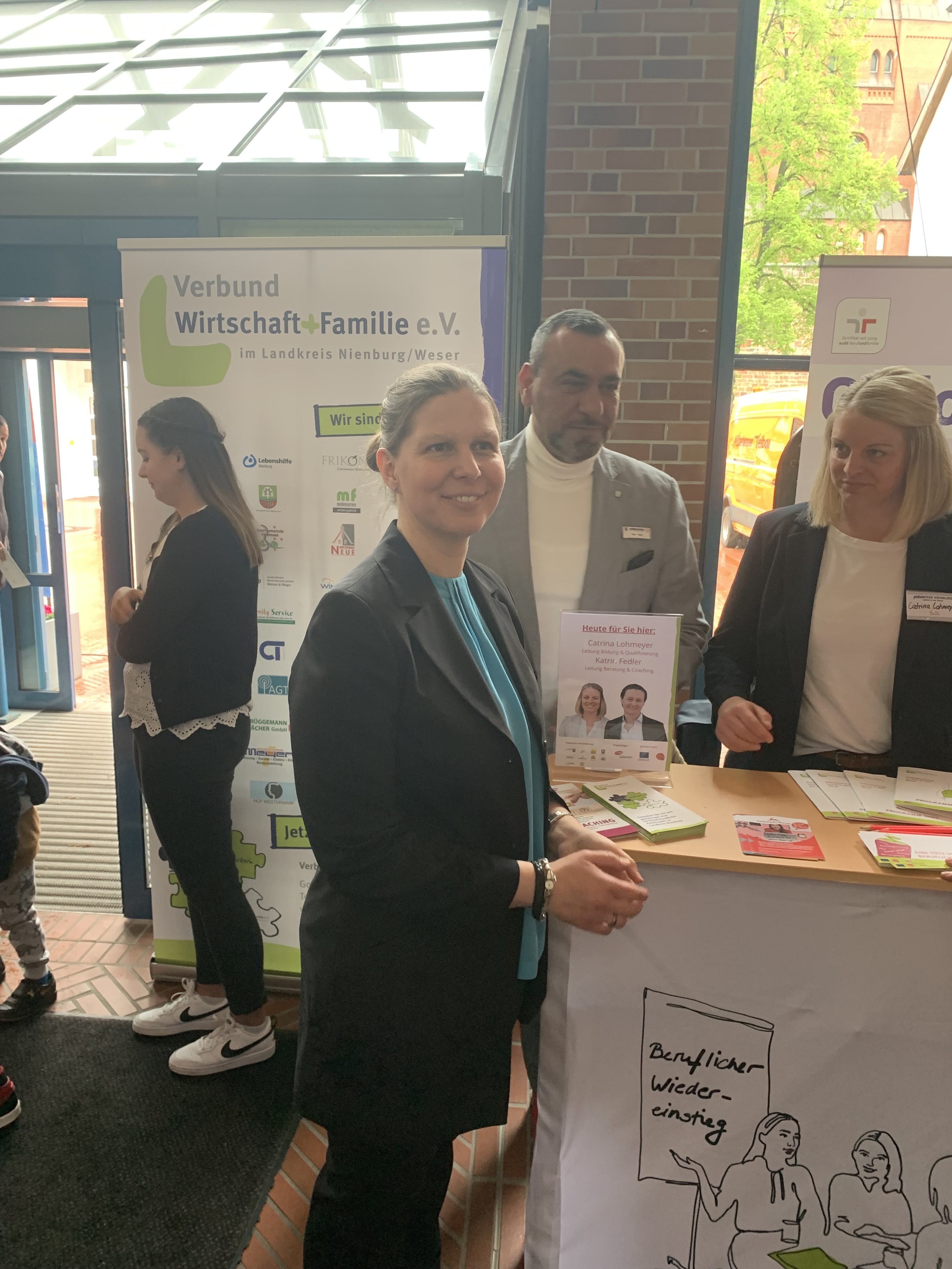 Das vielfältige Angebot der Messe deckte sich mit der Vielfältigkeit der Interessierten im Rathaus. Von Berufseinsteigenden bis zu Berufserfahrenen, von Niedersachsen bis hin zu Geflüchteten aus deren Ländern: das Publikum war bunt gemischt: „Wir wollten eine Messe für eine breite Masse veranstalten, egal ob jung oder alt, egal in welcher Lebensphase man sich gerade befindet“, erklärt Daniela Meyer, stellvertretende Geschäftsführerin im Jobcenter Nienburg. „Wir sind mit der Beteiligung sehr zufrieden. Vor allem das Angebot unserer Sprachmittler wurde sehr gut angenommen. So konnten wir auch Menschen erreichen, deren Muttersprache nicht Deutsch ist“, fügt Meyer hinzu.